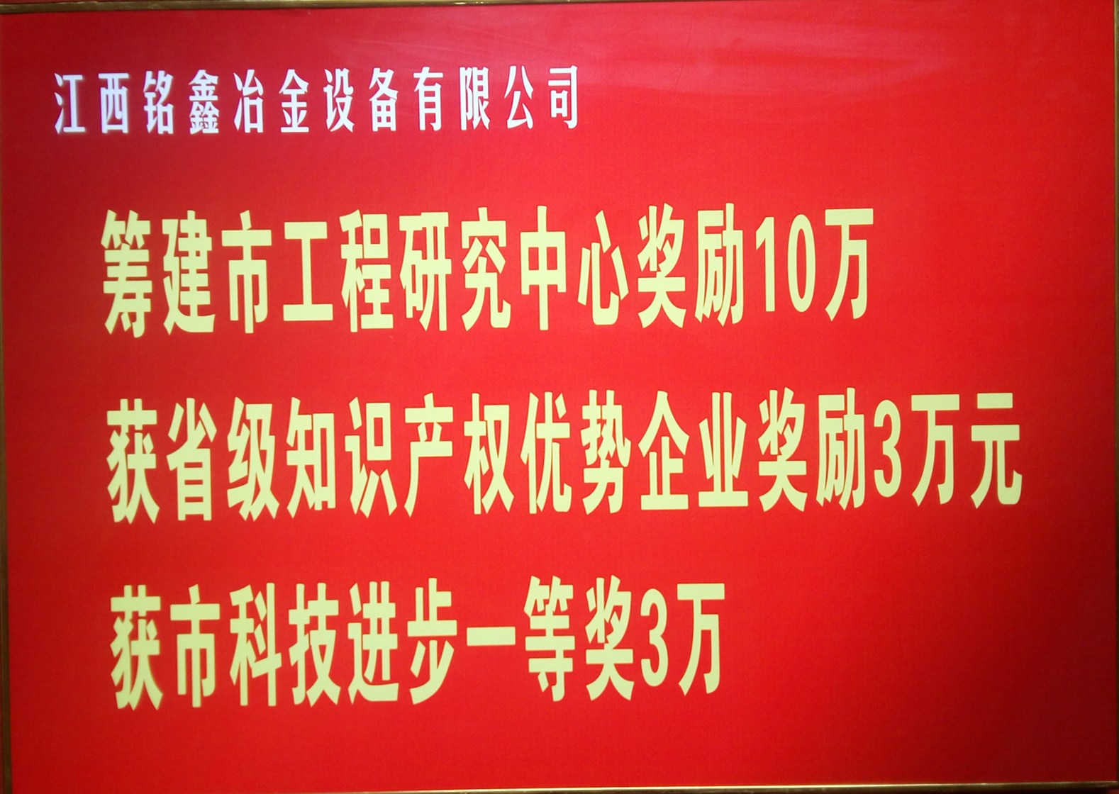 祝賀銘鑫冶金設備有限公司被評選為2016優(yōu)秀企業(yè)家,并獲得籌建市工程研究中心獎勵10萬元,獲得省級知識產權優(yōu)勢企業(yè)獎勵3萬元,獲得市科技進步一等獎3萬元。